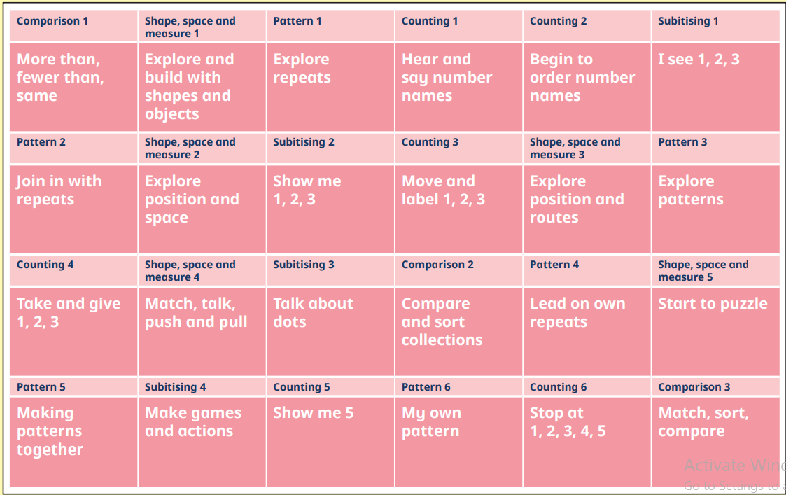 The Nursery maths scheme revisits key mathematical concepts and develops them throughout the year. There is a variety of opportunities to develop the understanding of number, shape, measure, and spatial thinking. The scheme supports the teaching of early maths skills through both adult-led and continuous provision activities. The focus is on introducing the foundations of mathematics through key practical experiences. We build on early mathematical concepts slowly and develop these throughout the year, so children gain a deep understanding.